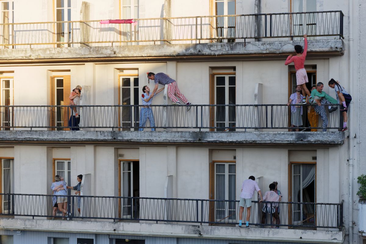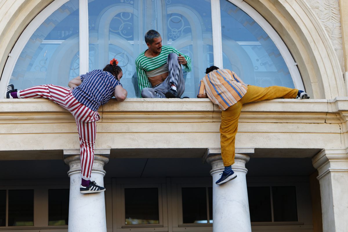 Ce projet est un laboratoire mouvant pour mettre en commun nos pratiques de danse, chant, cirque, parkour, théâtre, écriture, dessin, fabrication… et en faire émerger des nouvelles, créer un vocabulaire commun et explorer le faire ensemble. C’est également le lieu d’élaboration d’un protocole artistique et festif, un protocole évolutif, nourri par chaque occurrence, qui se construit à chaque fois dans une ville, avec ses habitant.e.s.